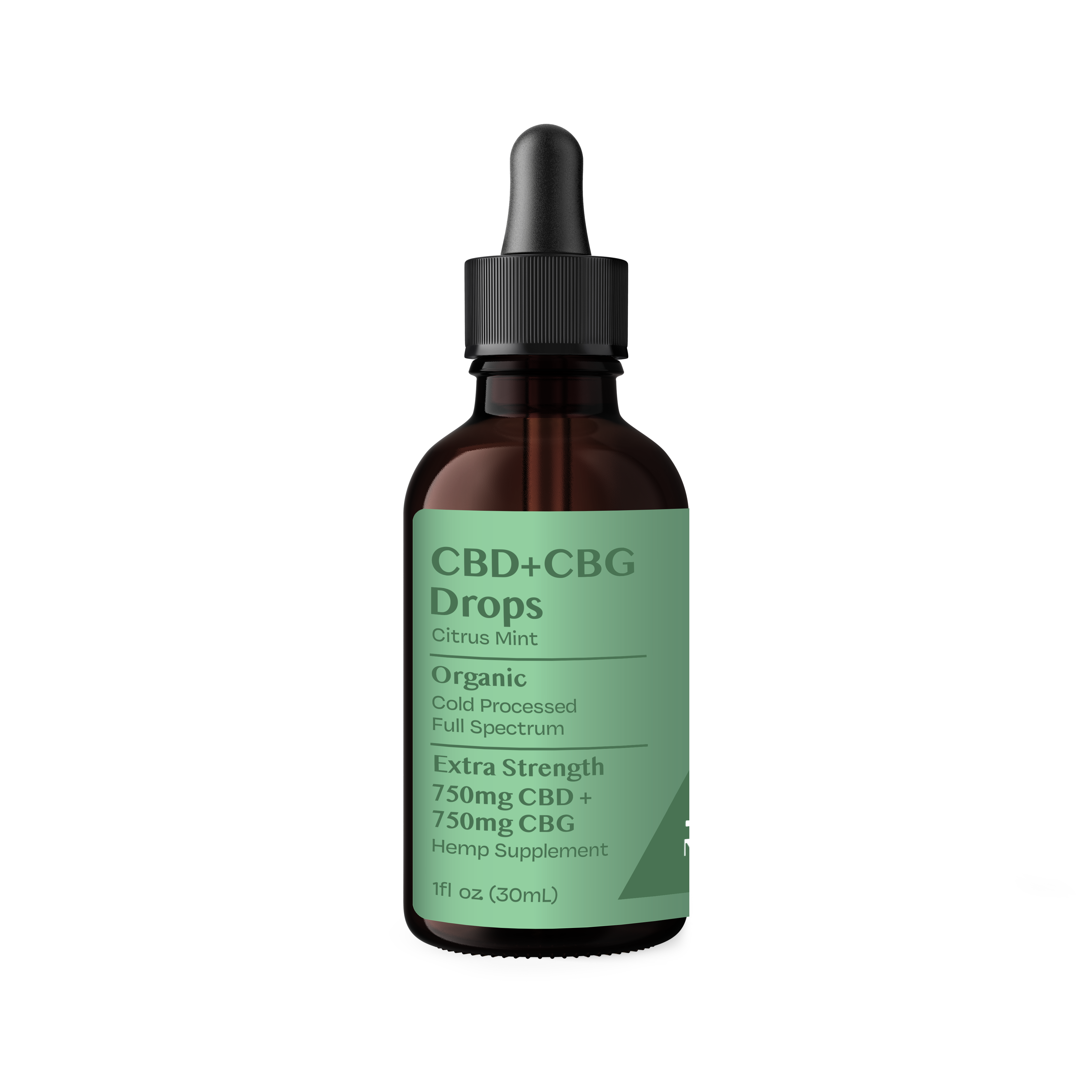 Organic CBG+CBD Drops Unflavored - Extra Strength 750mg+750mg
